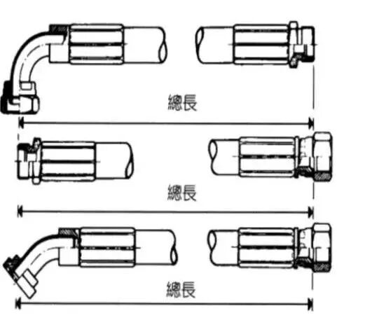 軟管總成長度:軟管總成長度是從一個軟管接頭端面到另一個軟管接頭端面的水平距離。這個長度允許±1%的制造誤差。如果長度過長,會影響外觀并增加成本;如果長度過短,軟管在受壓伸展或壓縮時沒有足夠的伸縮余地,可能會導(dǎo)致軟管被破壞。