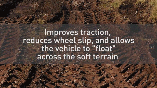 當(dāng)車輛降低車速行駛時(shí),輪胎制造商允許其降低胎壓。與通常認(rèn)知不同,車輛在較低的胎壓下行駛能夠延長(zhǎng)輪胎使用壽命,因?yàn)檩喬ピ鷤吞ッ嫒睋p的風(fēng)險(xiǎn)降低了。由于輪胎在松軟泥地或沙地上浮于表面而不留下較深的車轍,因此CTIS系統(tǒng)還能優(yōu)化輪胎滾阻,降低油耗。