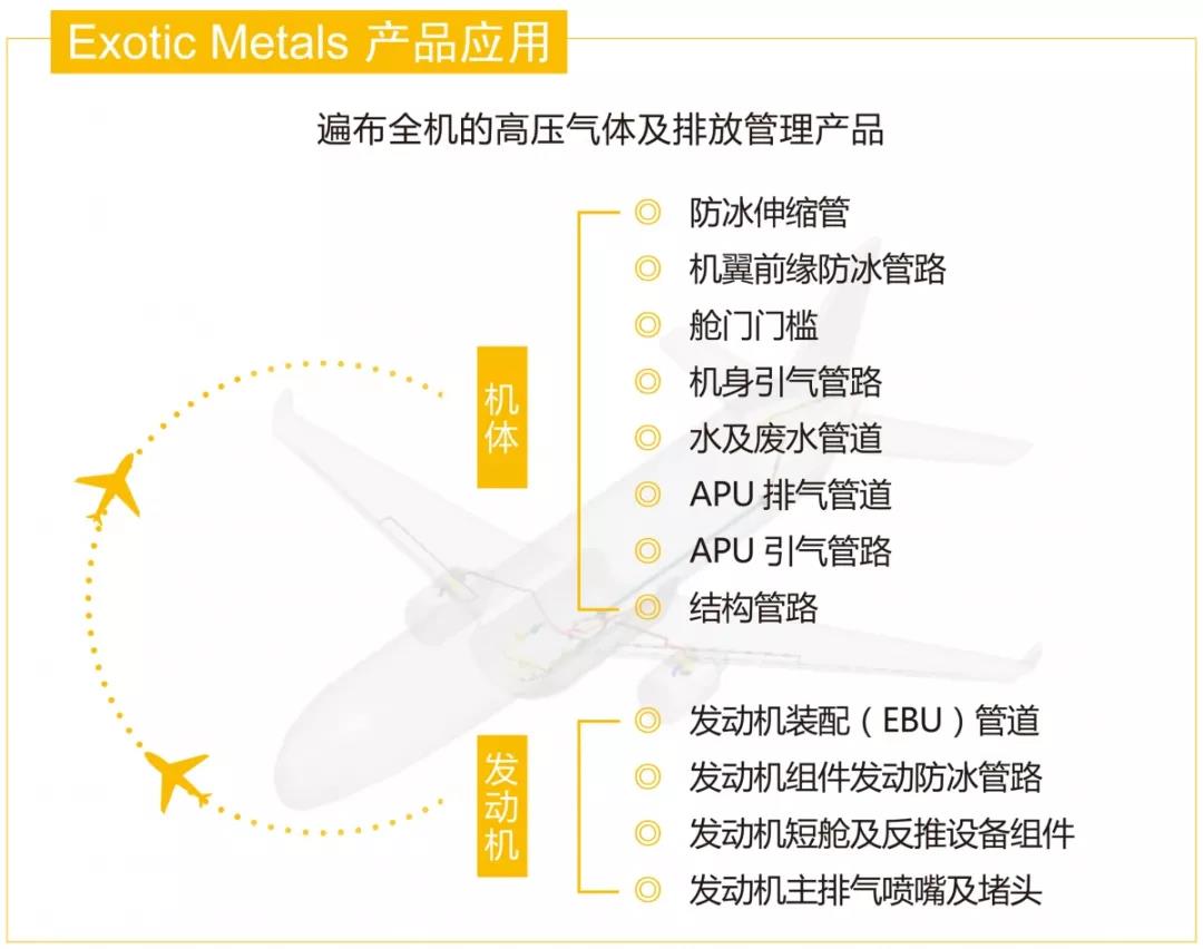 Exotic Metals是特種合金材質(zhì)高溫氣體和排氣管理領(lǐng)域的主要供應(yīng)商,其產(chǎn)品廣泛應(yīng)用于全球主要飛機(jī)和航空發(fā)動(dòng)機(jī)平臺(tái)。