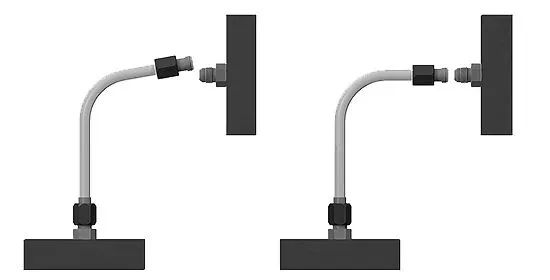 未對齊或未正確接觸裝配的關(guān)鍵是使管的末端與連接接頭對齊如果鋼管與接頭的密封面沒有對齊,就會形成管路的泄漏路徑。正確的操作是在螺母擰緊前,確認(rèn)鋼管與連接接頭的密封面對齊并正確地接觸然后擰緊螺母。如果您的連接如圖1左側(cè)所示則表明鋼管與接頭沒有對齊:如果您的連接如圖1右側(cè)所示,則表明鋼管與接頭沒有正確接觸。